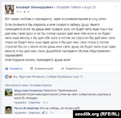 Фейсбукда "Здоровье Каримову" (Каримовга саломатлик) гуруҳи ташкил этилди.