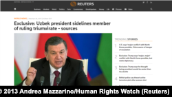 “Ўзбекистон Президенти Шавкат Мирзиёев мамлакатни ўтган йилдан буён бошқариб келаётган триумвиратнинг бир аъзосини четлатиб, ўз ҳокимиятини мустаҳкамлашга киришди”, деб хабар қилди Рейтер агентлиги Ўзбекистон ҳукуматидаги ўзгаришлардан хабардор манбаларига таяниб.