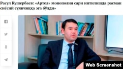 “Artel” монополист эмаслигига ишонгимиз келади, ҳақиқатан де юре у монополист эмас ва бунга интилмаяпти, бироқ де факто интиляпти. Буни импорт маҳсулотларига қўйилаётган турли тўсиқ ва оширилган божлар мисолида кўрса ҳам бўлади… Куни кеча “Artel” “Миллий тикланиш” партиясини танлаганини англадим, партия эмас, “Artel” танлади ва монополия сари интилишда расман сиёсий “криша”га эга бўлди. Энди лоббизм билан расман шуғулланиш ва қонунчилик орқали де юре монопол бўлишга ҳаракат қилиш имконияти пайдо бўлди”, дейди Р.Кушербаев.