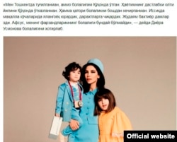 “Мен Тошкентда туғилганман, аммо болалигим Қўқонда ўтган. Ҳаётимнинг дастлабки олти йилини Қўқонда ўтказганман. Ҳамма қатори болаликни бошдан кечирганман. Иссиқда маҳалла кўчаларида ялангоёқ юрардик, дарахтларга чиқардик. Жудаям бахтиёр дамлар эди. Афсус, менинг фарзандларимнинг болалиги бундай бўлмайди”, - дейди у.