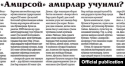 “Биргина автомобиллар учун мўлжалланган тураргоҳнинг нархи 150 минг сўм қилиб белгилаб қўйилганидан кейин бошқа нархларни айтмасак ҳам бўлаверади. Ахир, 150 минг сўмни бир ҳафталик харажат сифатида оиласига ишлатаётганлар камми? “Амирсой”даги энг гавжум жой – дор йўлига чиқишнинг ўзи бир кишига 80 минг сўм. Демак, тўрт кишидан иборат битта оиланинг “Амирсой”га бир кунга бориб, дам олиб келиши учун энг камида бир миллион сўм керак. Яхшироқ дам оламан деган оила икки ёки уч миллион сўмни чўнтакка солиб қўйгани яхши”, деб ёзади газета.